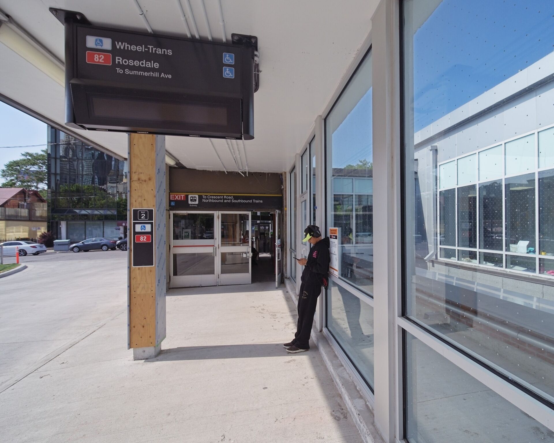 The station’s design is compact and functional, reflecting the TTC’s early architectural style, and its surface-level setting gives it a subtly different feel from the deeper downtown stations to the south. Just beyond the entrance, Rosedale Valley Road dips into the ravine, adding a natural backdrop unique within the system. With its blend of mid-century transit design and one of Toronto’s most scenic residential environments, Rosedale stands out as a tranquil and distinctive stop on the Yonge line.